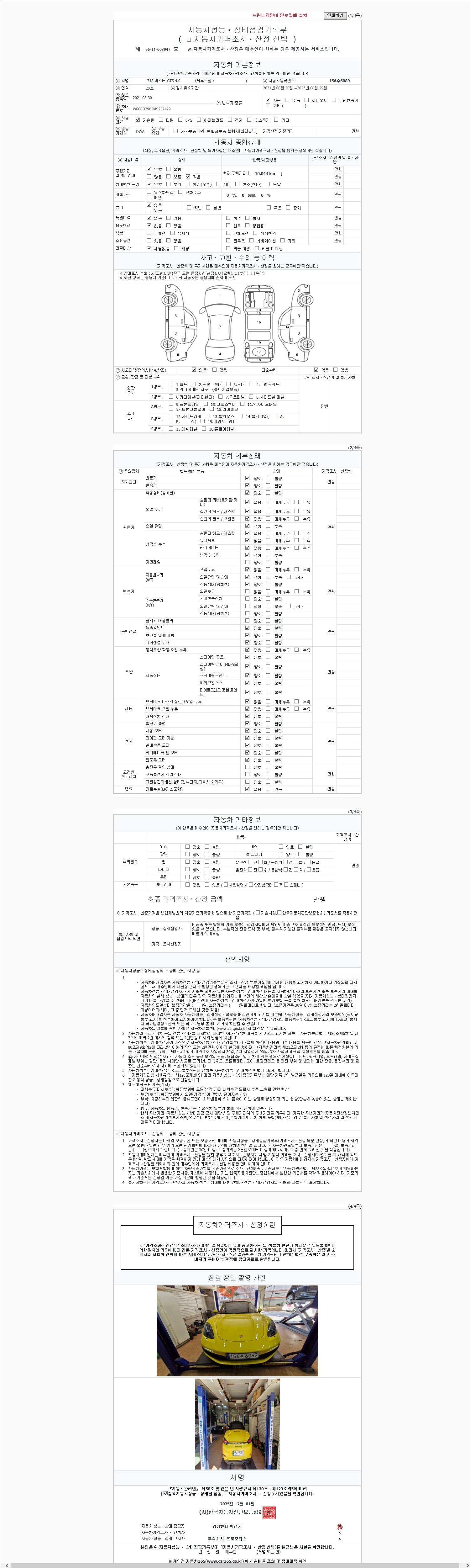 - 사고유무 : 성능기록부 참조