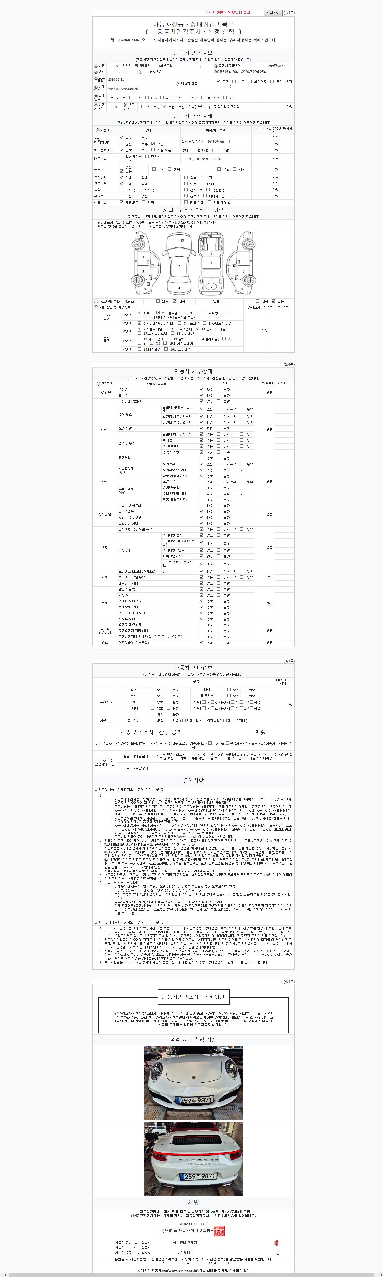 | 주행거리 | 67,104 km | 차량번호 | 259주9871 | 사고유무 | 성능기록부 참조 | 제시번호 | 제 2147483647 호 |