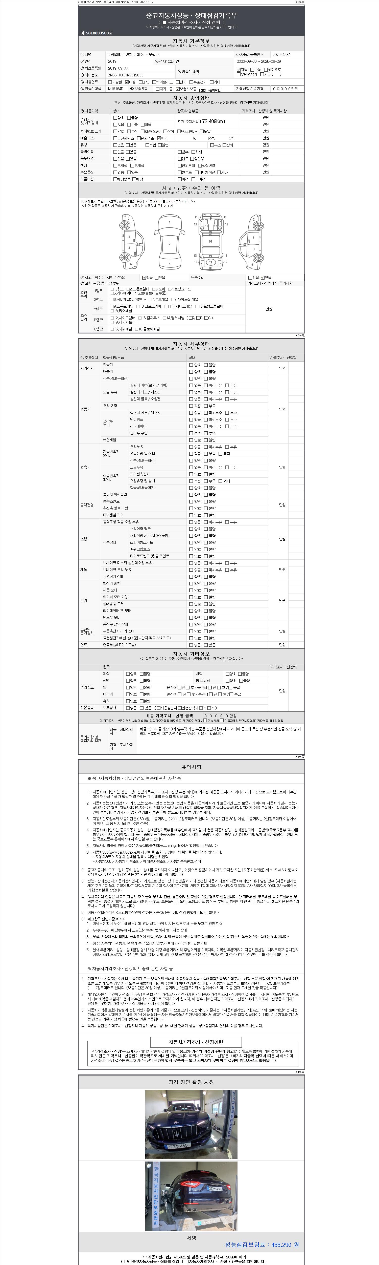 - 사고유무 : 성능기록부 참조