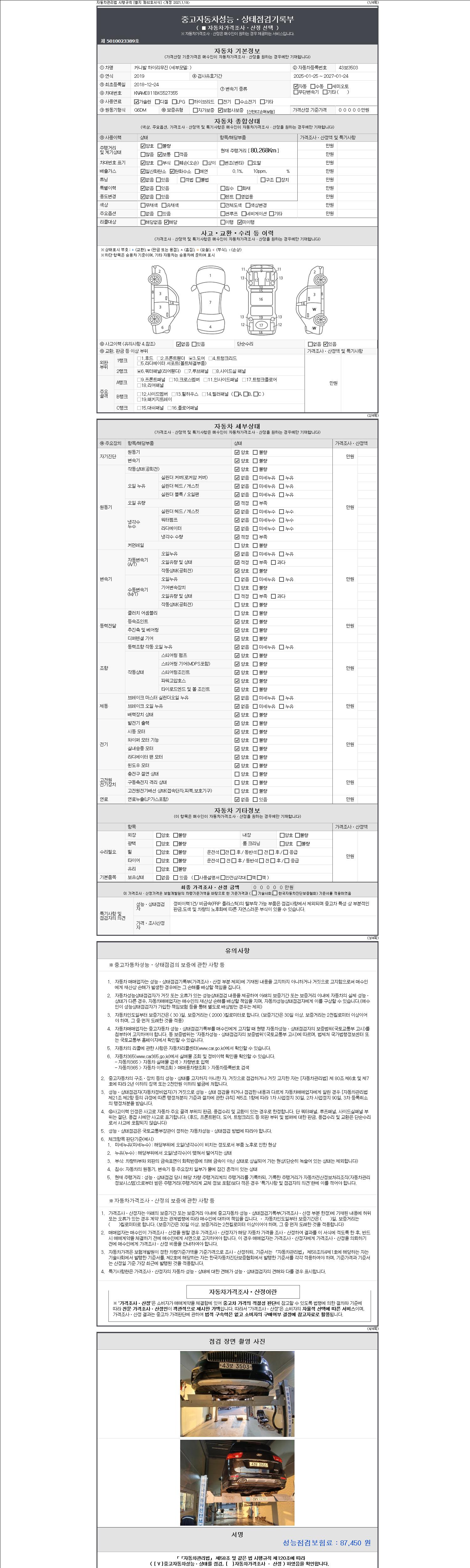 - 2. 차량 등록증이나 성능점검지 등을 상담자에게 요청및 확인하시고 사전에 미리 점검 하시기를 권유드립니다.