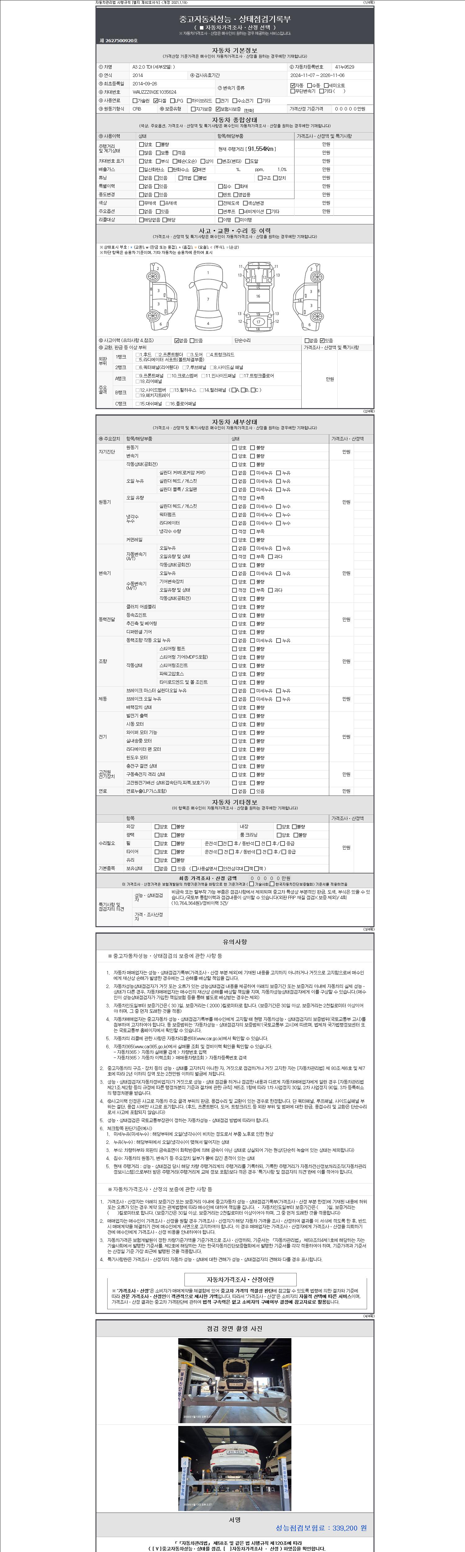 | 주행거리 | 91,554 km | 차량번호 | 41누9529 | 사고유무 | 성능기록부 참조 | 제시번호 | 제 2147483647 호 |