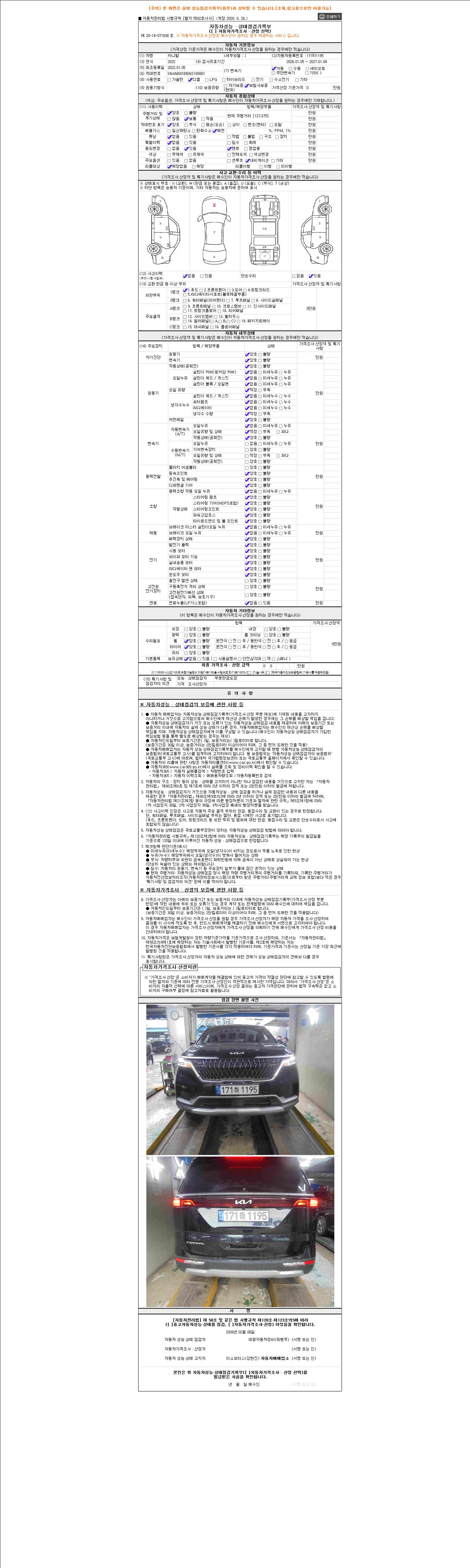 - 2. 차량 등록증이나 성능점검지 등을 상담자에게 요청및 확인하시고 사전에 미리 점검 하시기를 권유드립니다.