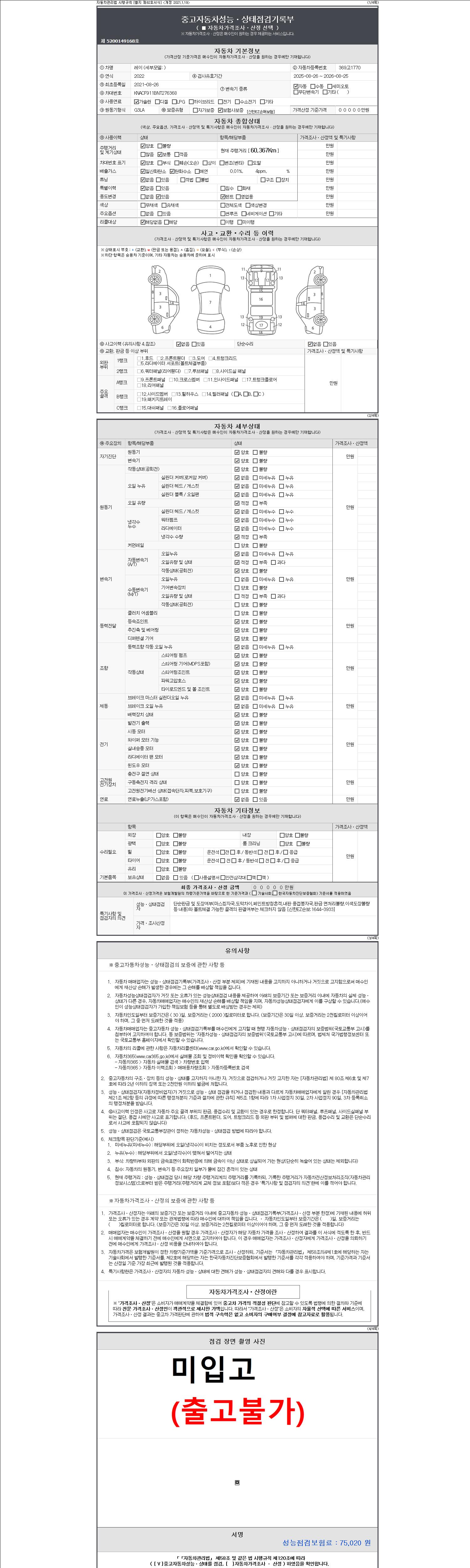 - 2. 차량 등록증이나 성능점검지 등을 상담자에게 요청및 확인하시고 사전에 미리 점검 하시기를 권유드립니다.