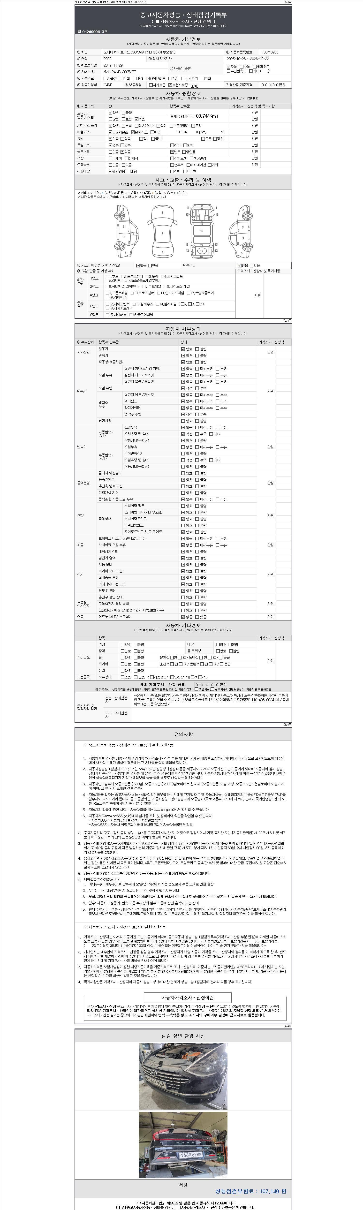 | 주행거리 | 103,744 km | 차량번호 | 361소6428 | 사고유무 | 성능기록부 참조 | 제시번호 | 제 2147483647 호 |