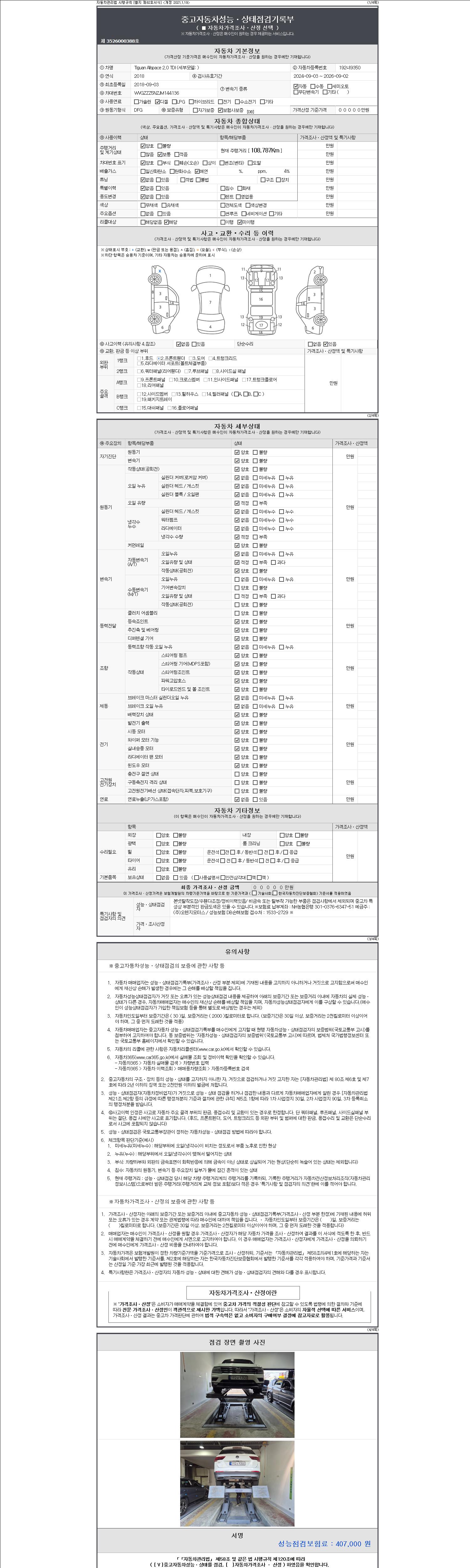 - 2. 차량 등록증이나 성능점검지 등을 상담자에게 요청및 확인하시고 사전에 미리 점검 하시기를 권유드립니다.