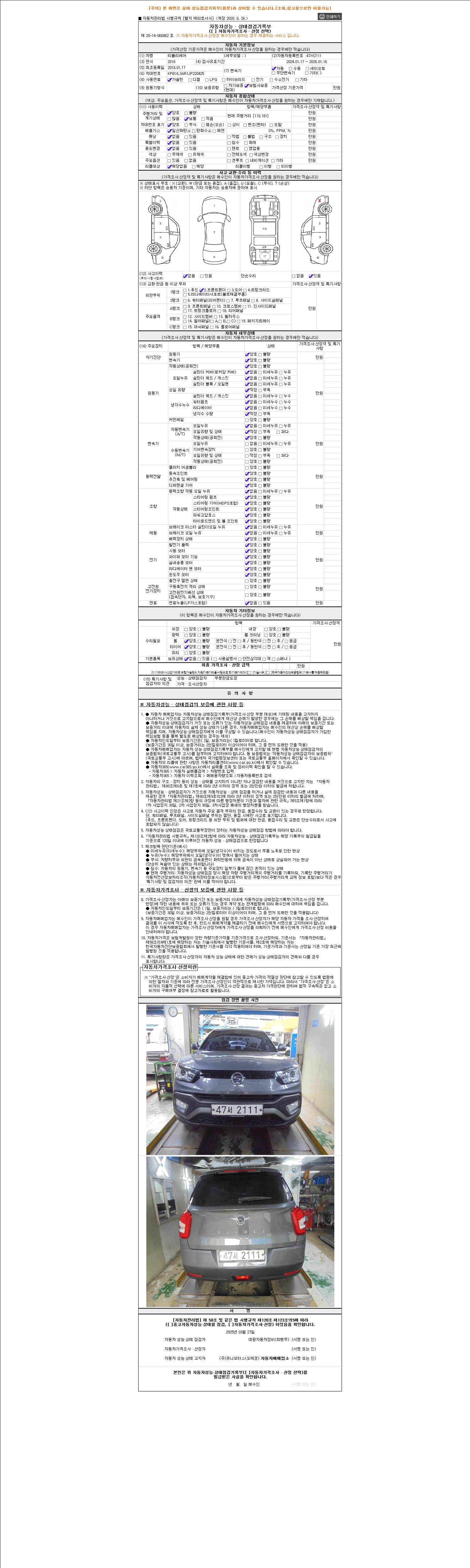 - 2. 차량 등록증이나 성능점검지 등을 상담자에게 요청및 확인하시고 사전에 미리 점검 하시기를 권유드립니다.