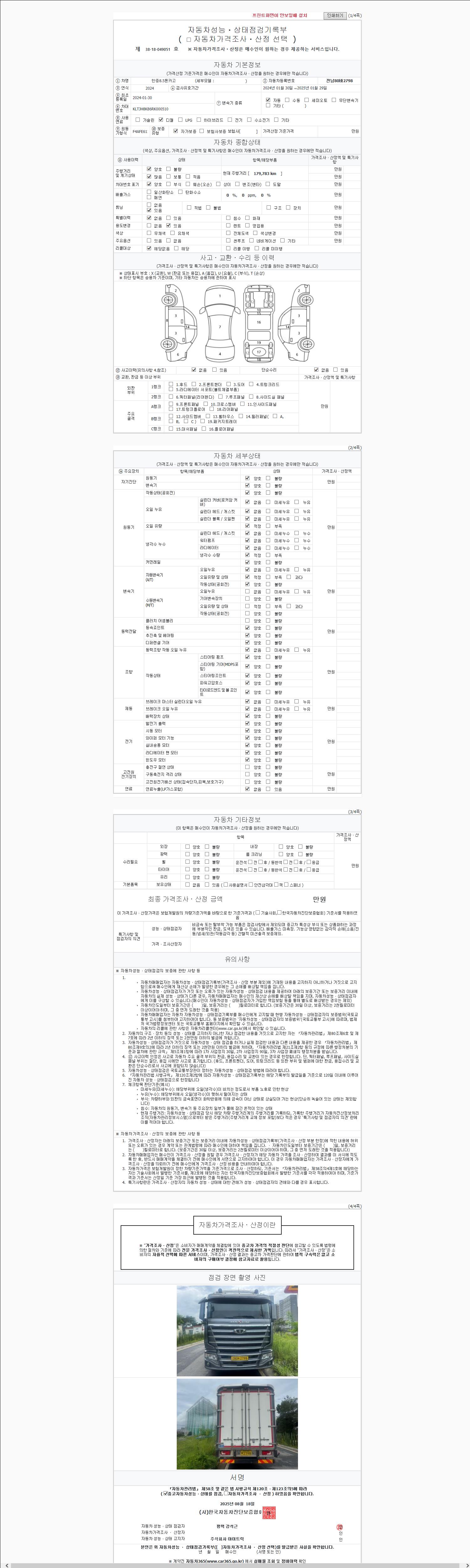 | 주행거리 | 179,783 km | 차량번호 | 96어6289 | 사고유무 | 성능기록부 참조 | 제시번호 | 제 2147483647 호 |