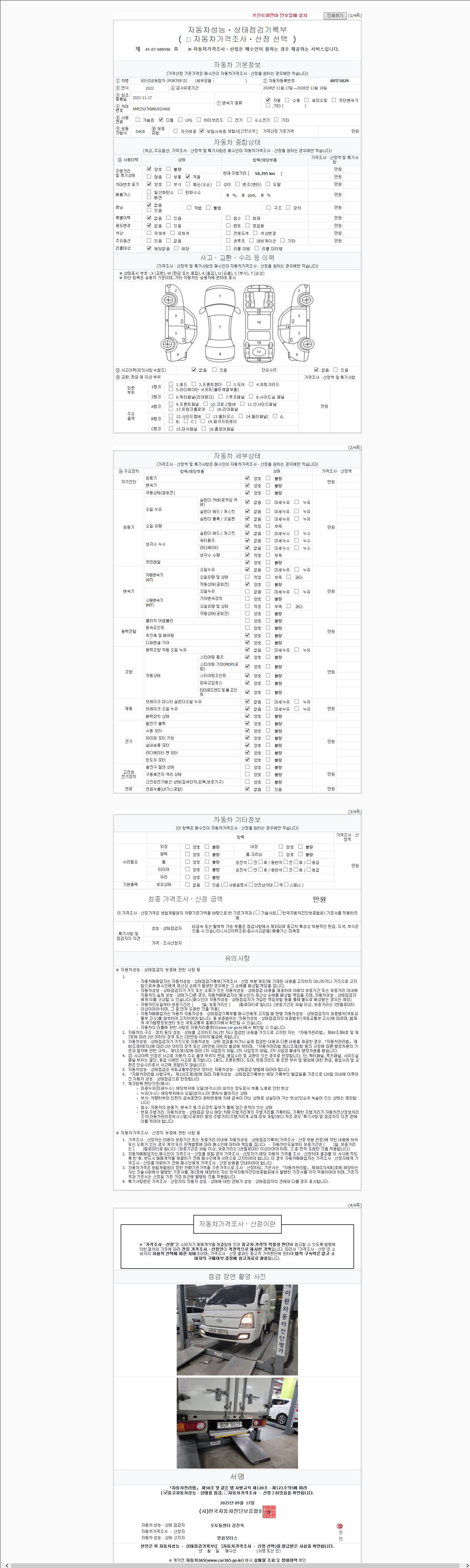 - 2. 차량 등록증이나 성능점검지 등을 상담자에게 요청및 확인하시고 사전에 미리 점검 하시기를 권유드립니다.