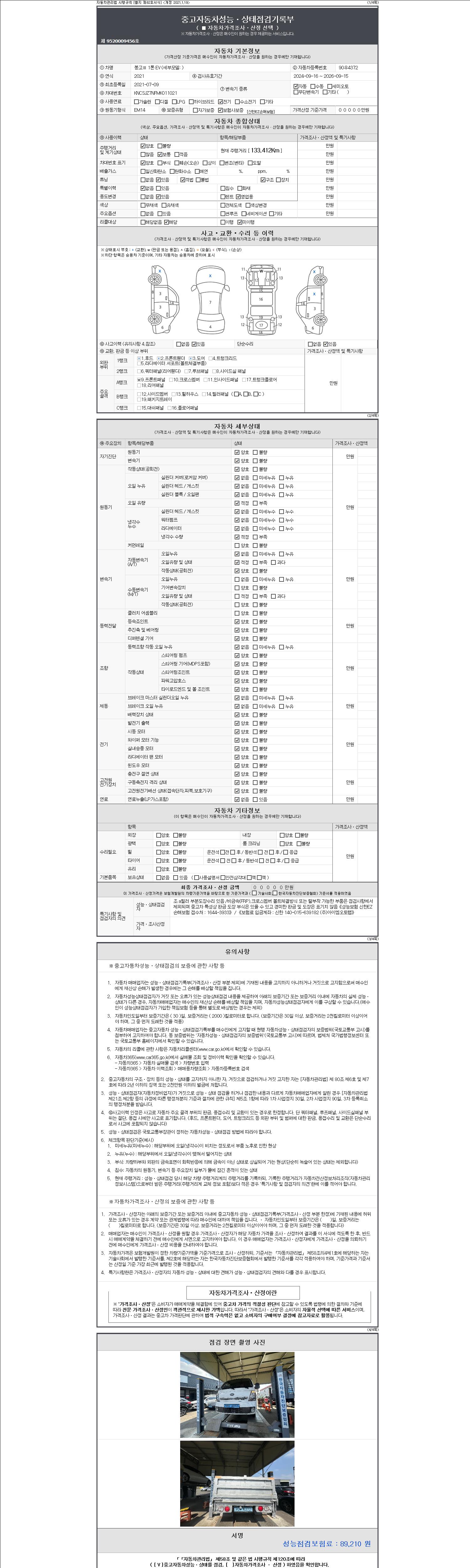 | 주행거리 | 133,412 km | 차량번호 | 90우4372 | 사고유무 | 성능기록부 참조 | 제시번호 | 제 2147483647 호 |