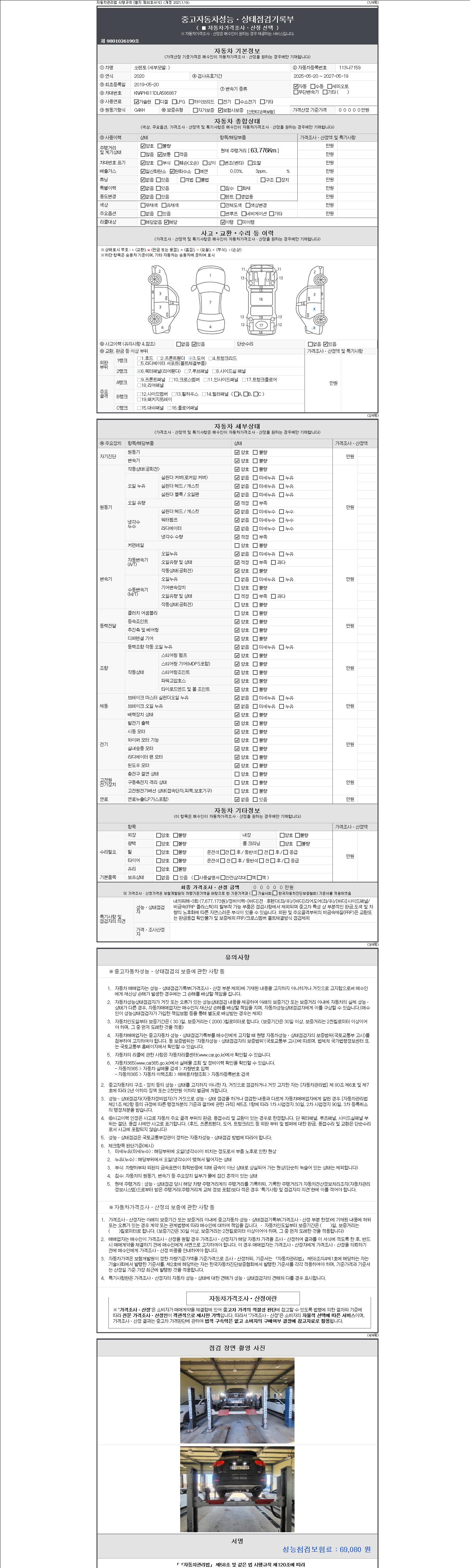| 주행거리 | 63,776 km | 차량번호 | 113나7159 | 사고유무 | 성능기록부 참조 | 제시번호 | 제 2147483647 호 |