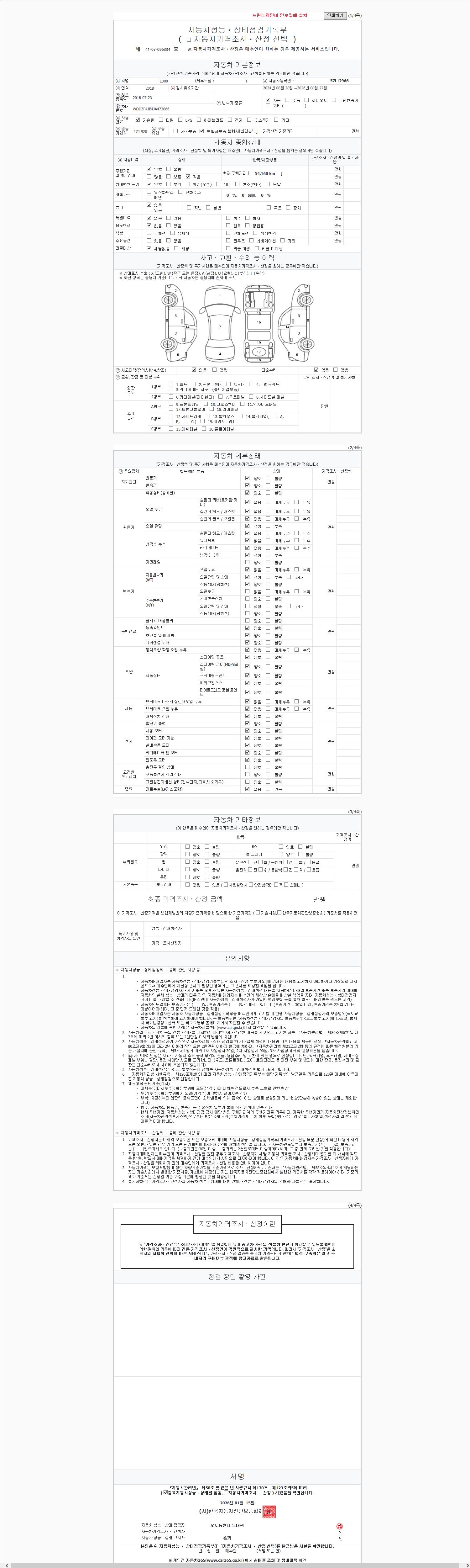 | 주행거리 | 54,158 km | 차량번호 | 57나2966 | 사고유무 | 성능기록부 참조 | 제시번호 | 제 2147483647 호 |