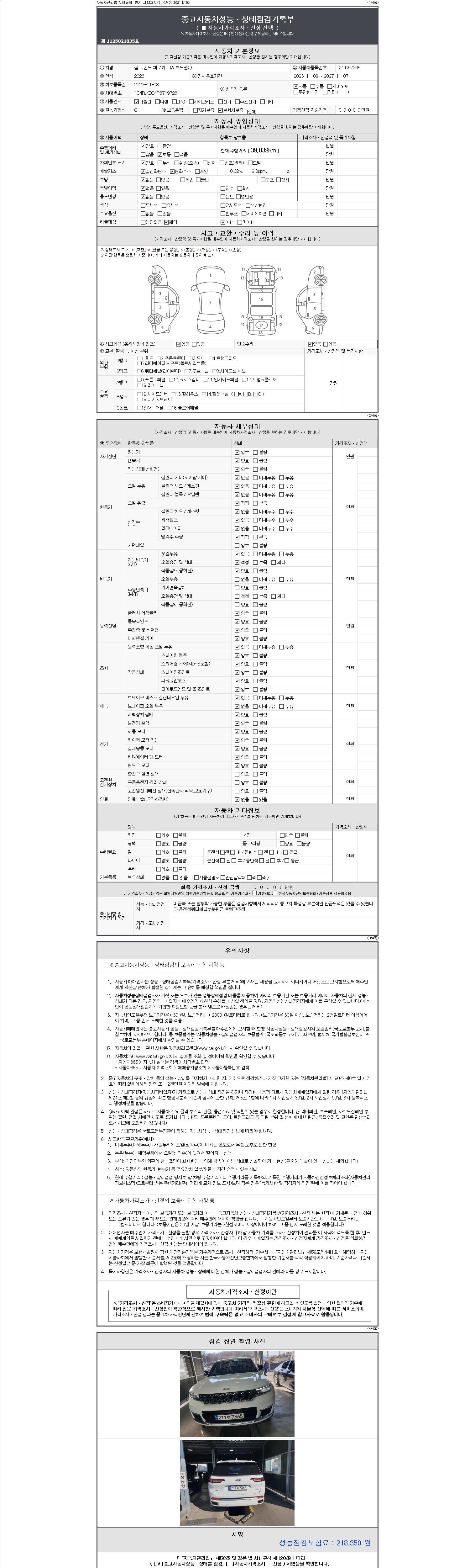 | 주행거리 | 39,839 km | 차량번호 | 211어7365 | 사고유무 | 성능기록부 참조 | 제시번호 | 제 2147483647 호 |