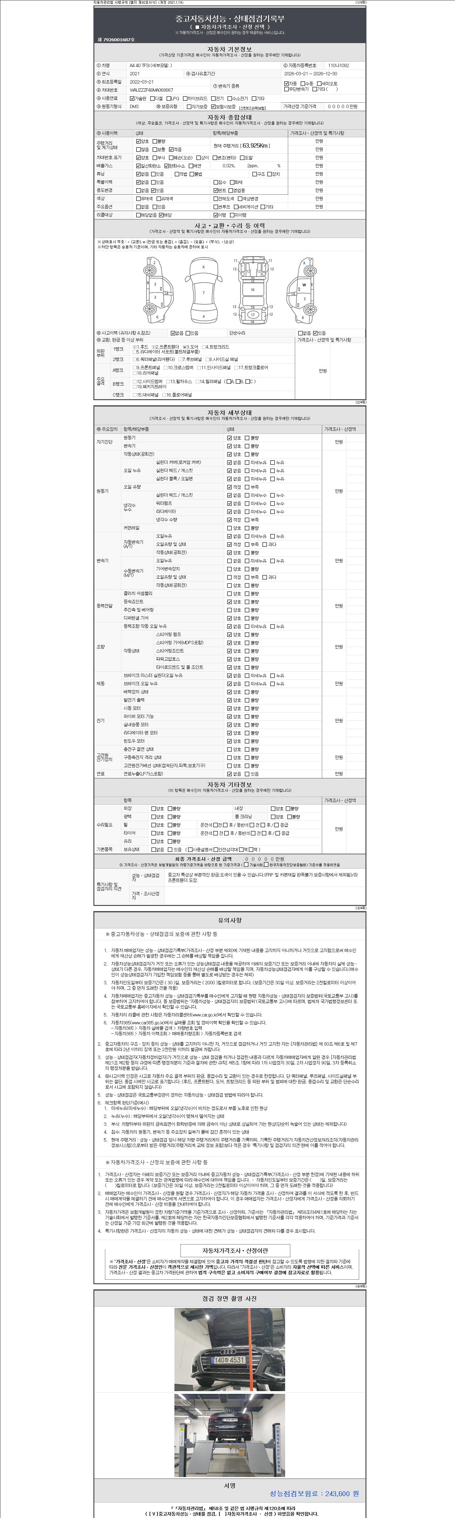 - 2. 차량 등록증이나 성능점검지 등을 상담자에게 요청및 확인하시고 사전에 미리 점검 하시기를 권유드립니다.