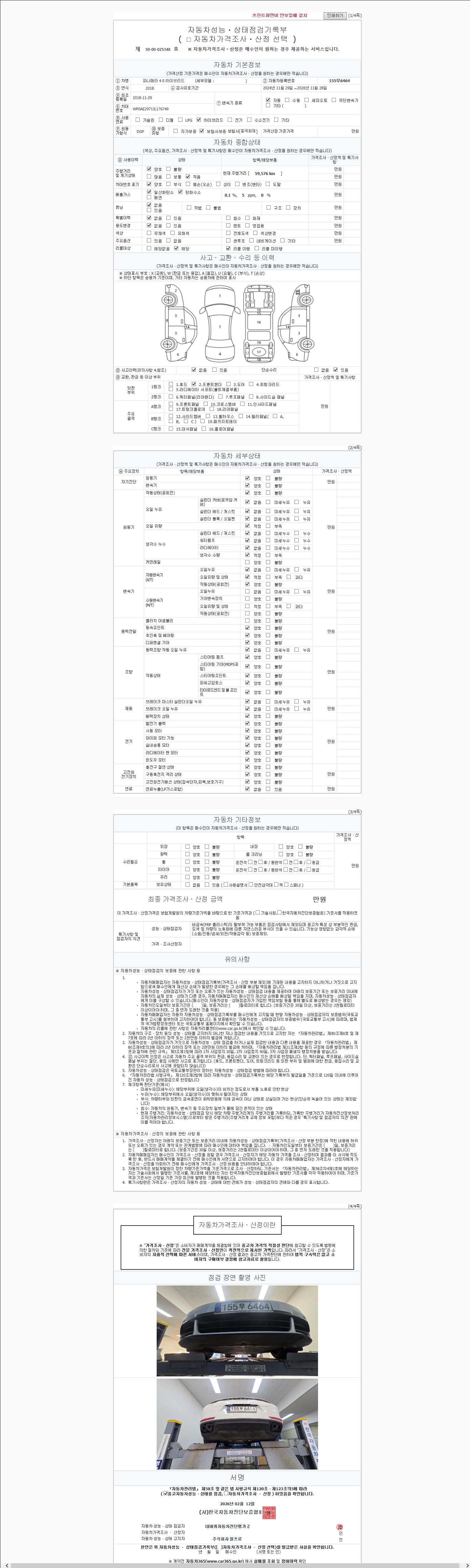 | 주행거리 | 59,576 km | 차량번호 | 155무6464 | 사고유무 | 성능기록부 참조 | 제시번호 | 제 2147483647 호 |