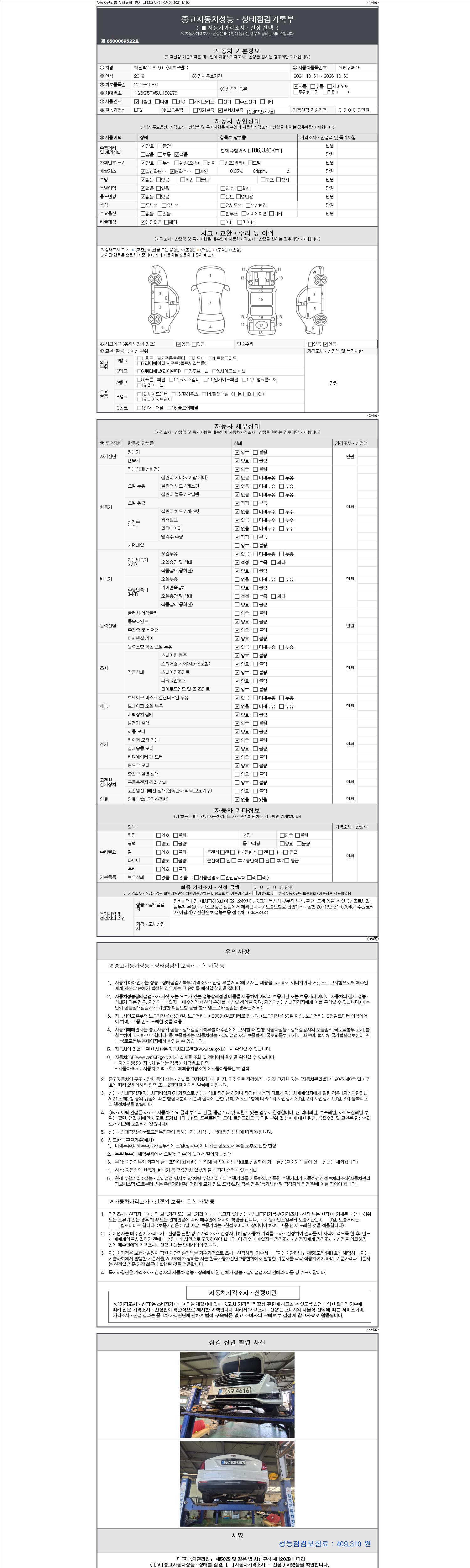 | 주행거리 | 106,320 km | 차량번호 | 306구4616 | 사고유무 | 성능기록부 참조 | 제시번호 | 제 2147483647 호 |