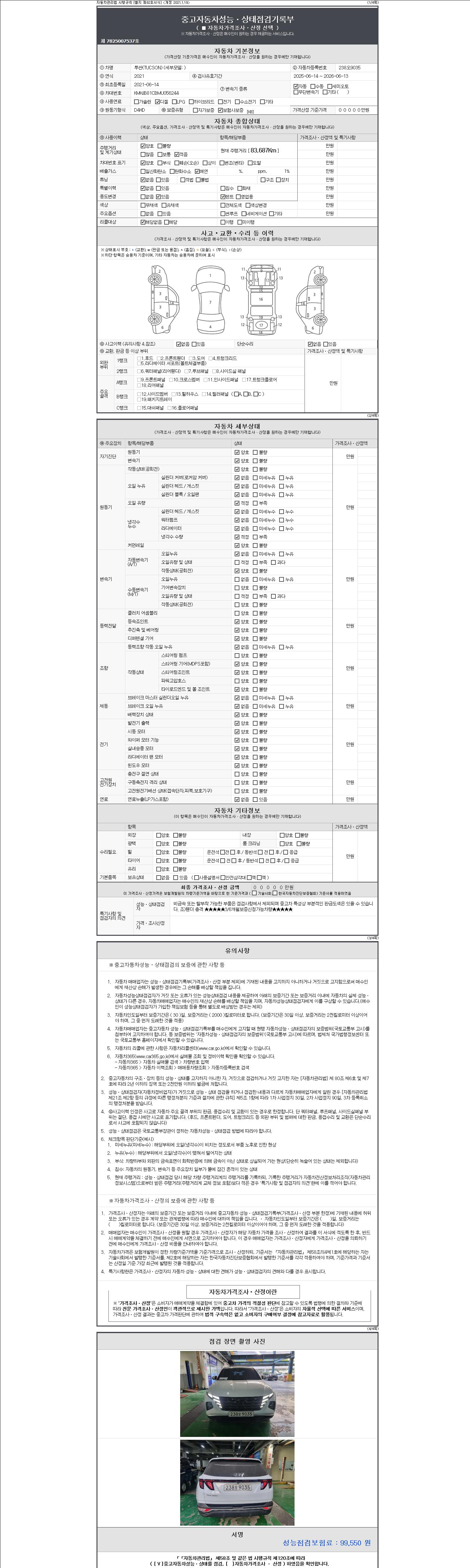 - 사고유무 : 성능기록부 참조
