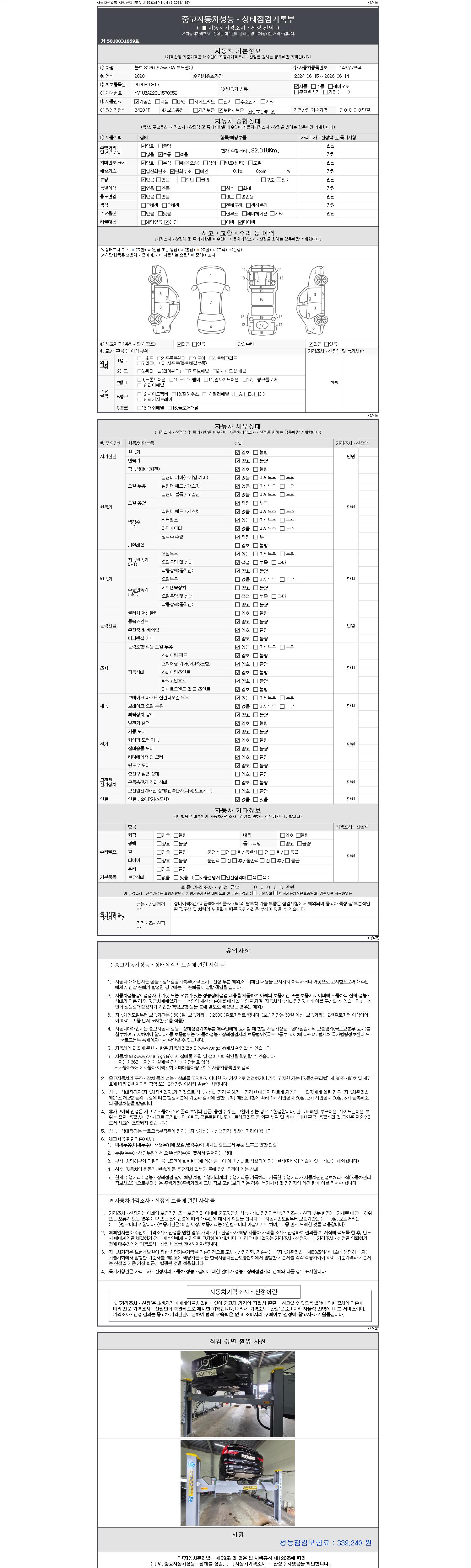 - 사고유무 : 성능기록부 참조