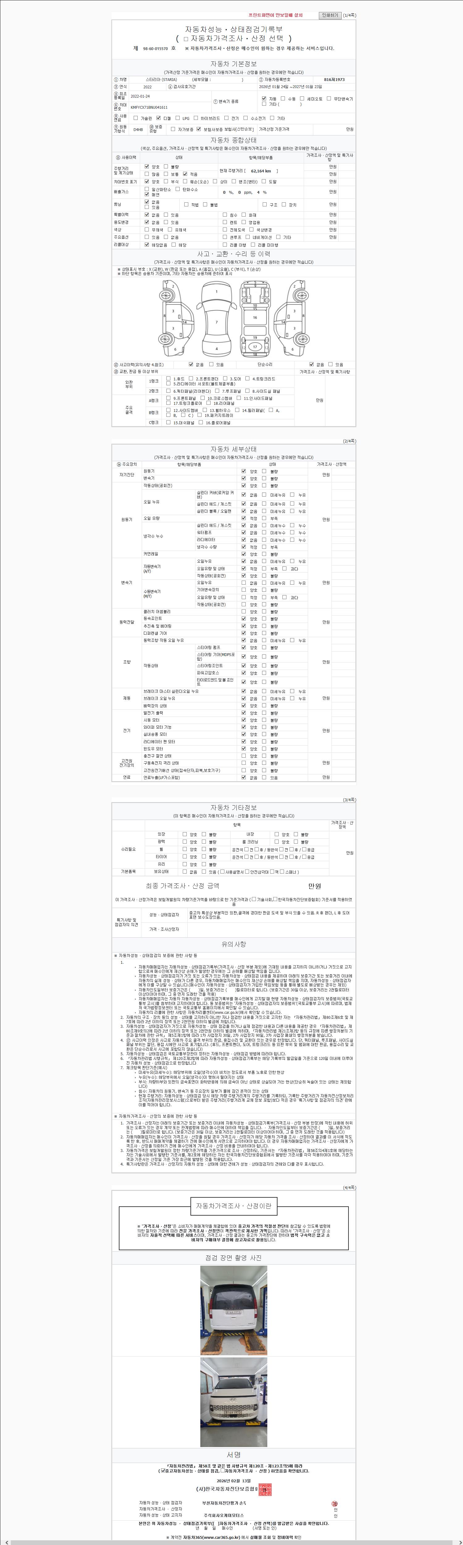 | 주행거리 | 62,059 km | 차량번호 | 816저1973 | 사고유무 | 성능기록부 참조 | 제시번호 | 제 2026029562 호 |